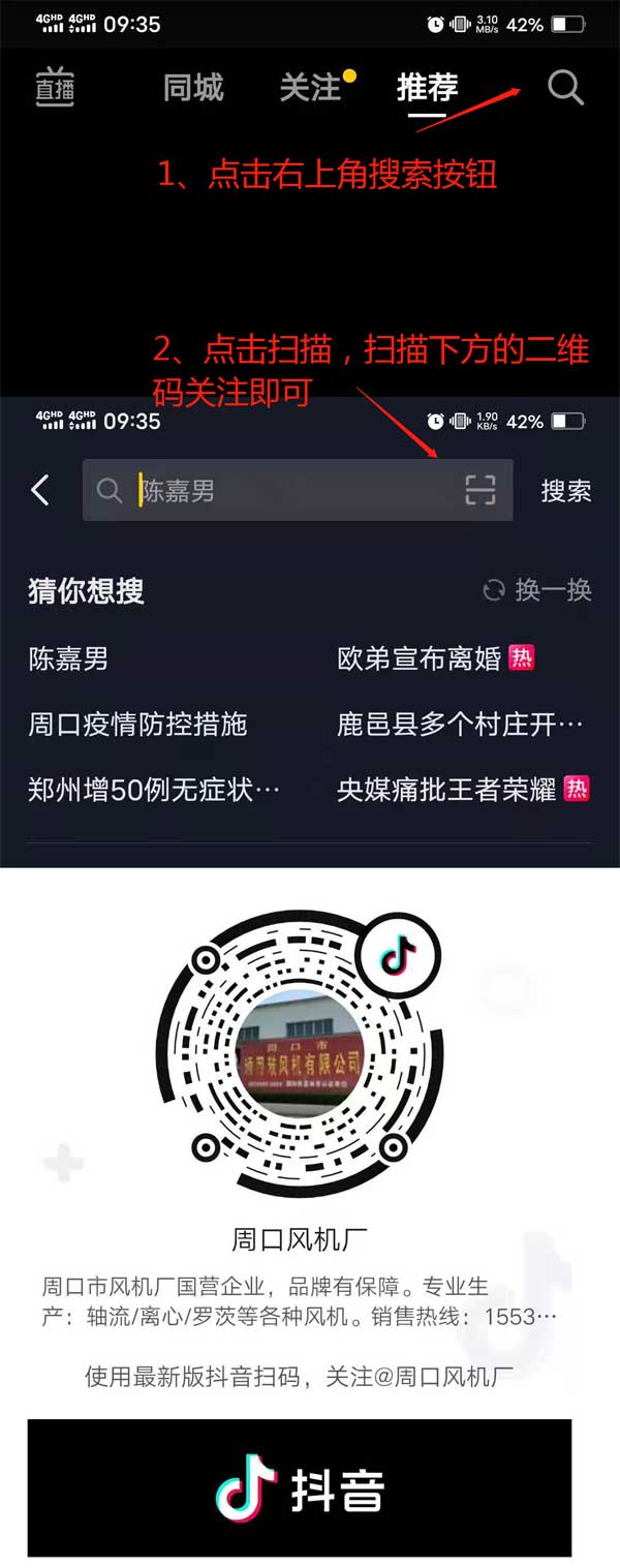 要如何关注周口风机厂官方“抖音”?